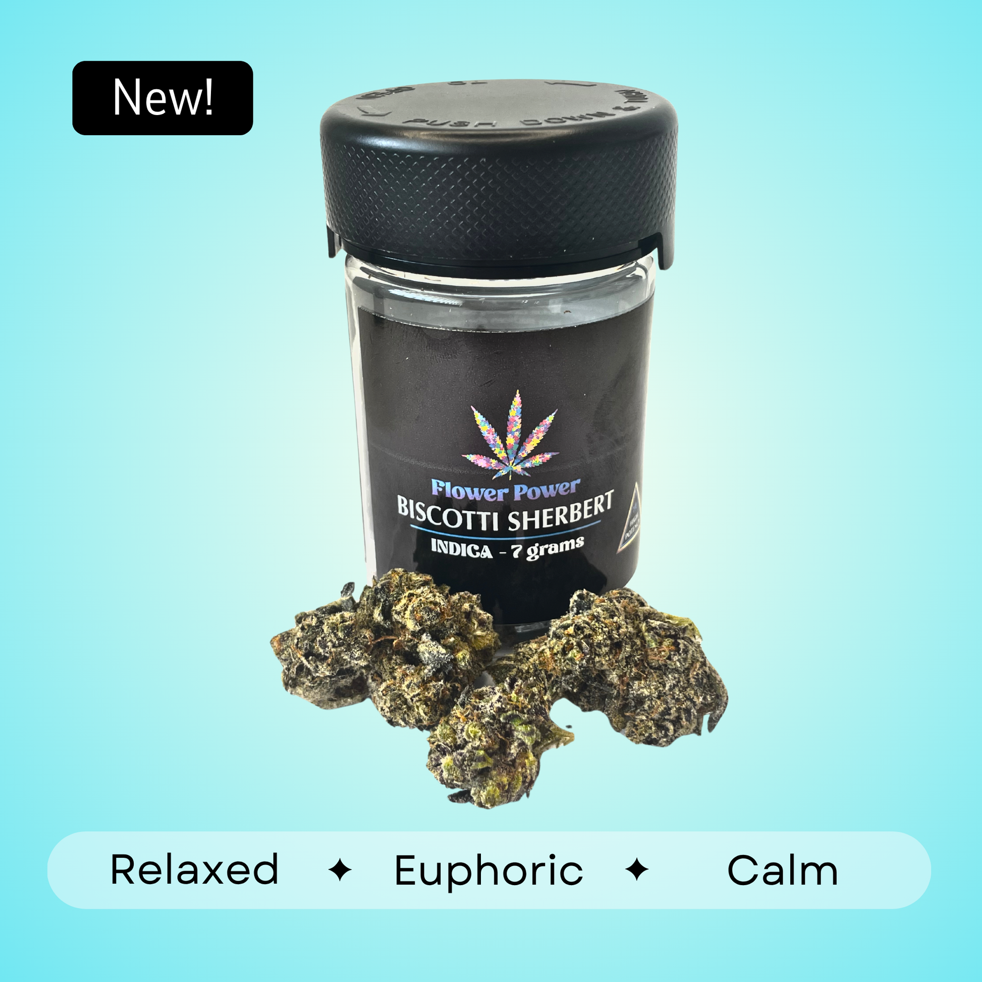 Biscotti Sherbert is a potent indica-dominant hybrid known for its rich, dessert-like flavor and powerful effects. With a smooth blend of sweet cream and earthy gas, this strain delivers a euphoric head buzz that eases into deep body relaxation. Perfect for evening sessions, its ideal for melting away stress and helping you drift into a restful night's sleep.