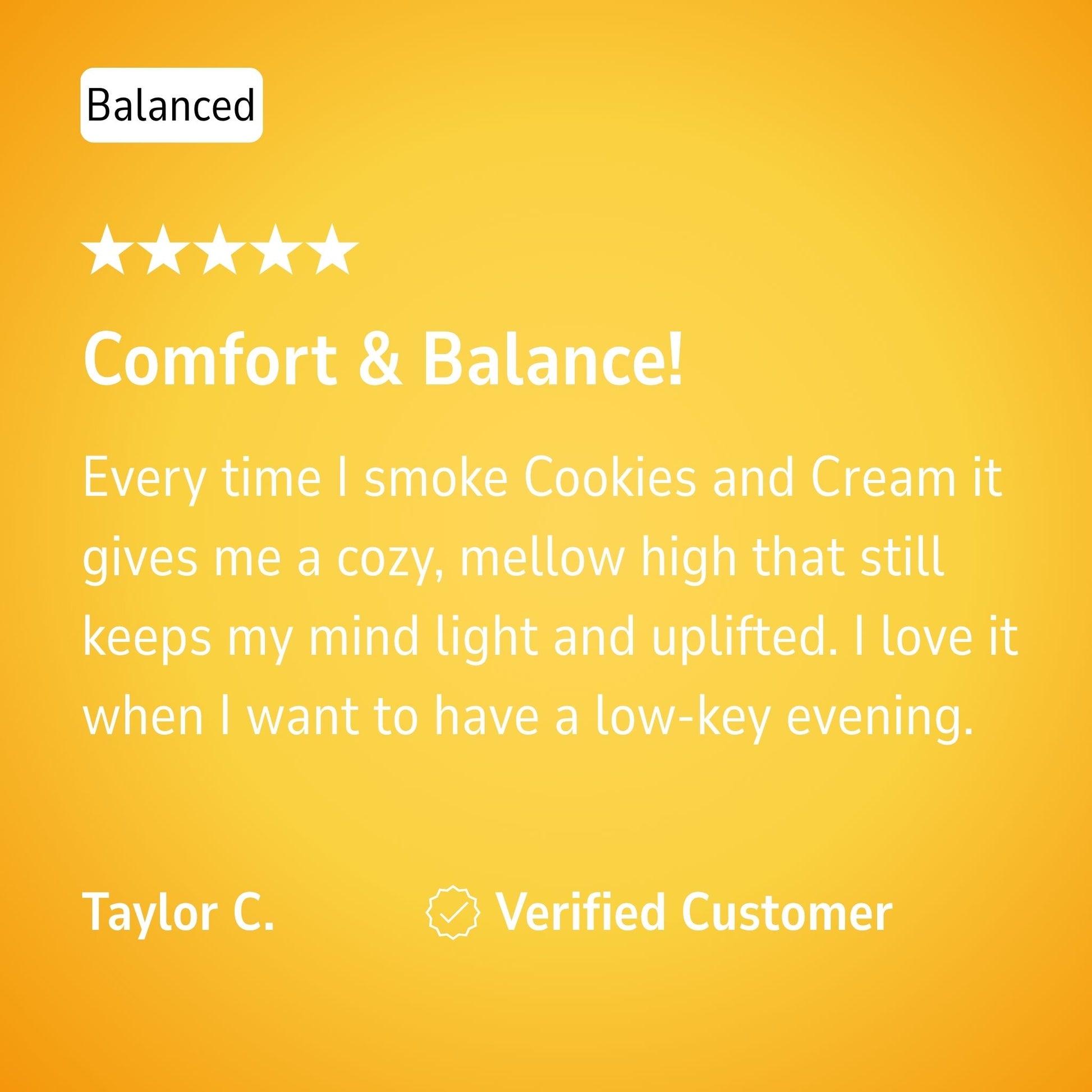 Cookies & Cream delivers a smooth, balanced high that relaxes the body without clouding the mind. With sweet, creamy flavor and a mellow finish, it's perfect for unwinding solo or easing into a chill social setting. A go-to hybrid for all-day calm and clarity.