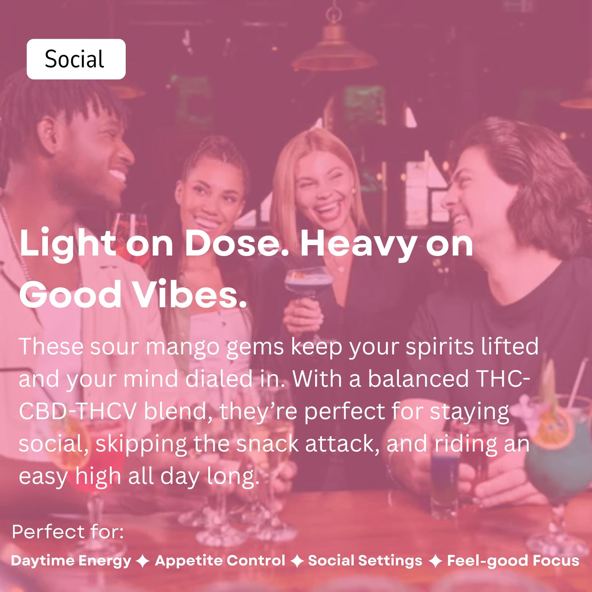✦ Dose: 20 mg each (15 mg THC • 1 mg THCV • 5 mg CBD)