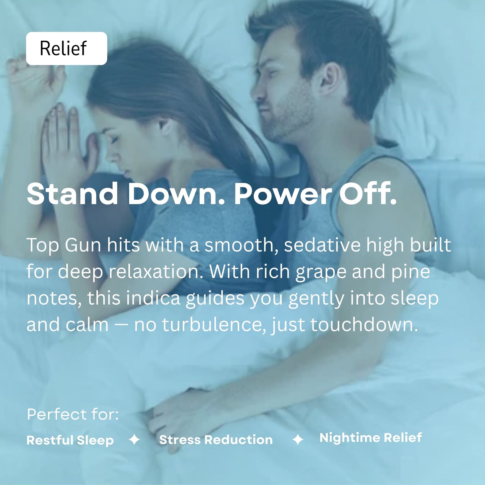 Top Gun is an indica-dominant strain that delivers a slow and heavy cerebral melt with euphoric and relaxing effects. Its earthy-pine profile adds a light crisp to every session, while its relaxing high makes it perfect for sleep and relief.